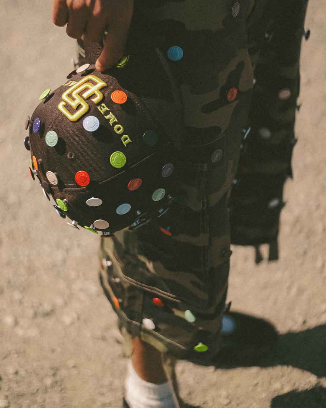 - Custom Domesday™ multicolor jean buttons made from recycled plastic