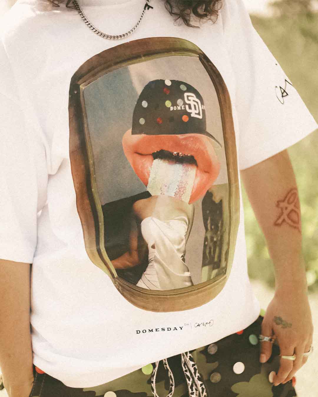 For the first chapter, we collaborated with Cairo — an artist straight out of Oceanside who flips history into collage. His work gives memory a new frame, reimagining the past while carving his place in the future of art. One of his early college pieces became the foundation for this design — now reworked through the Domesday lens with added detail, story, and city pride.